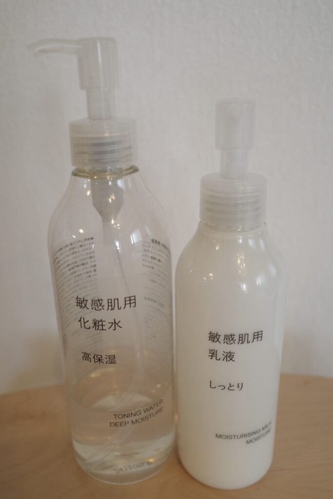 私は化粧水と乳液を愛用しています。また、無印良品で別売りのポンプをつけるとワンプッシュでとても楽です。
